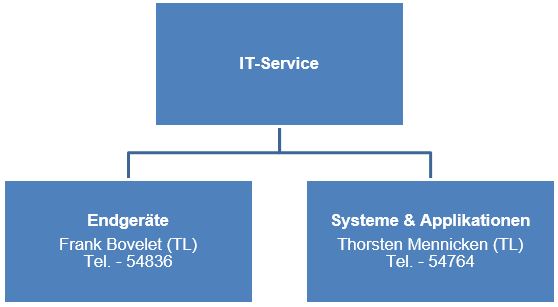 Der IT-Service unterteilt sich in vier Teams, die Serviceaufgaben im Bereich der IT wahrnehmen.
